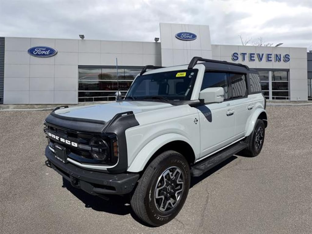 Experience off-road capability and everyday comfort in this stylish Gray 2022 Ford Bronco Outer Banks 4x4. Equipped with a powerful EcoBoost 2.7L Twin Turbo V6 engine and a 10-speed shiftable automatic transmission, this Bronco is ready for any adventure. The Outer Banks trim provides luxury touches like heated seats, a leather-wrapped steering wheel, and advanced tech including an 8-inch touchscreen with SYNC infotainment, wireless Apple CarPlay and Android Auto, FordPass Connect, and a premium sound system. Safety is a priority with features like front/rear parking sensors, lane keeping assist, blind spot monitoring, automatic emergency braking, and rear cross-traffic alert. Enjoy convenience with remote start, push-button start, proximity entry, running boards, and a removable soft top for open-air driving. Stay connected on the go with built-in Wi-Fi hotspot and multiple USB outlets. The Bronco's rugged design includes LED headlights/fog lights, tow hooks, a full-size matching spare, and hill descent assist. Perfect for both city streets and the trail.Certified Pre-Owned