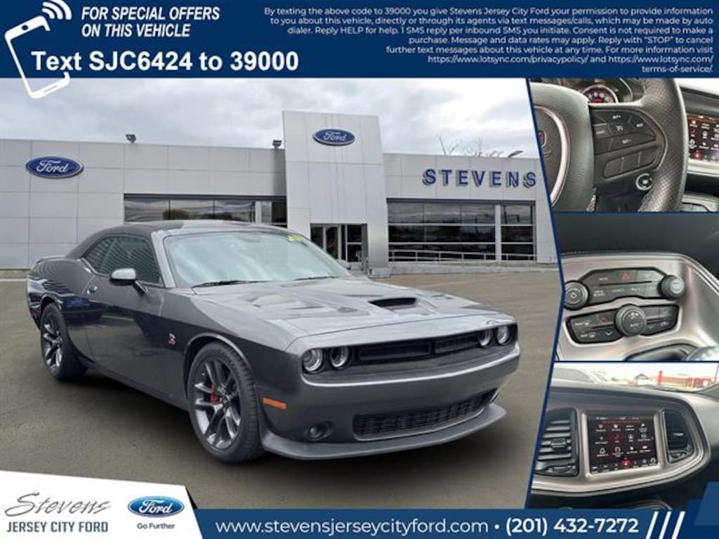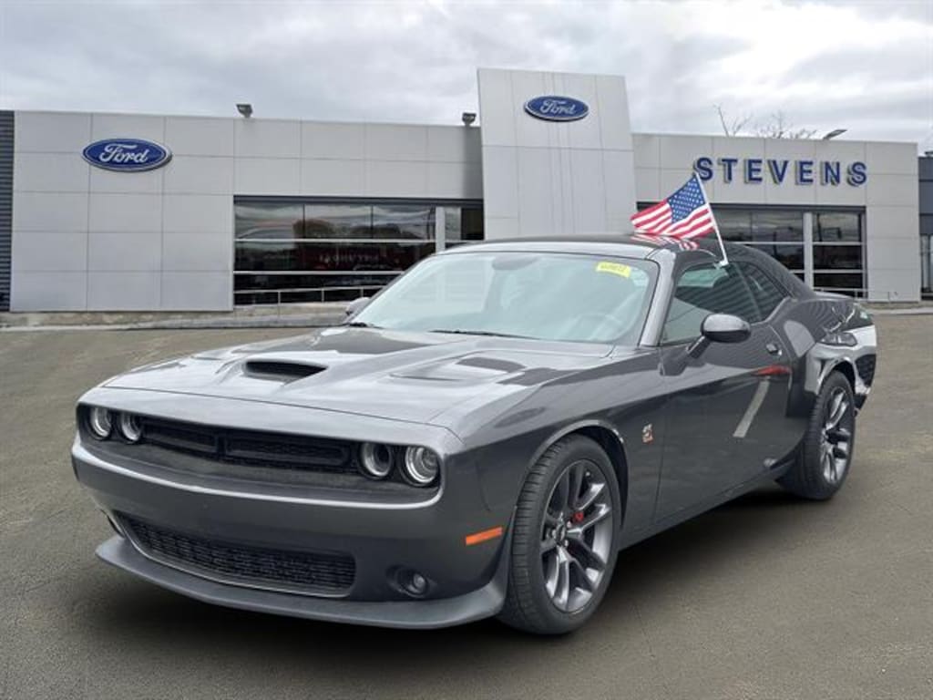 Experience muscle car performance with this stunning Gray 2023 Dodge Challenger R/T Scat Pack Coupe! Powered by a legendary HEMI 6.4L V8 engine delivering 485hp and 475 lb-ft of torque, paired with a thrilling 6-speed manual transmission and rear-wheel drive for true enthusiast driving. Enjoy premium features including Uconnect infotainment with an 8.4-inch touchscreen, Android Auto & Apple CarPlay, Bluetooth connectivity, and SiriusXM satellite radio. The Alpine premium audio system and customizable 7-inch instrument cluster enhance every drive. Sport bucket seats, Brembo premium brakes, sport-tuned suspension, and a performance exhaust complete the package. Advanced safety features such as rearview camera, rear parking sensors, and multiple airbags provide peace of mind. Don't miss your chance to own this iconic blend of power and technology-schedule your test drive today!