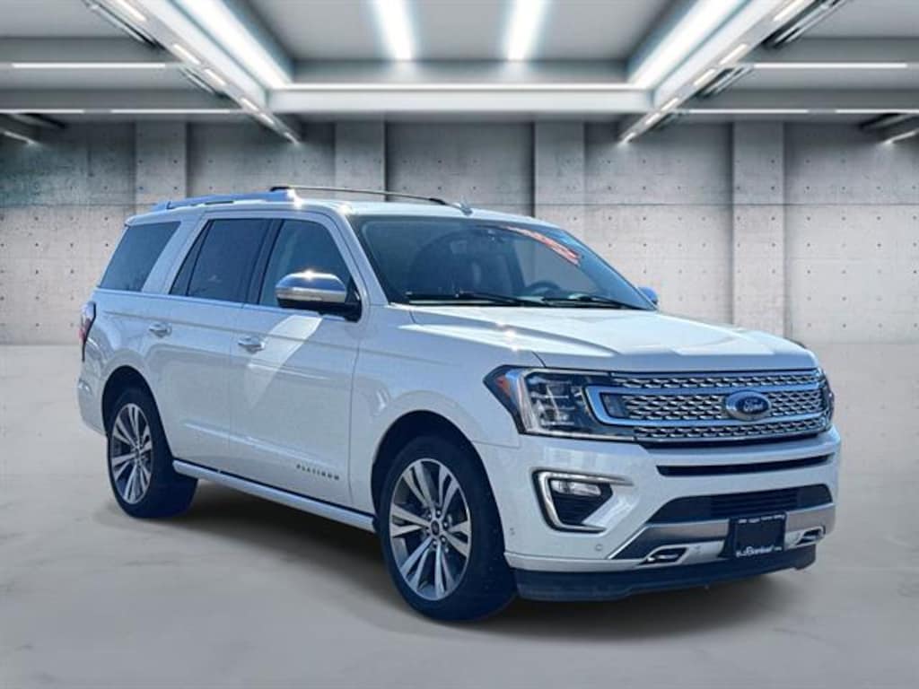 Experience luxury and power with this White 2020 Ford Expedition Platinum 4x4 SUV. Equipped with a robust EcoBoost 3.5L Twin Turbo V6 engine and a 10-speed automatic transmission, this Expedition offers smooth performance and impressive towing capability with its Class IV trailer hitch and trailer stability control. Inside, enjoy heated and ventilated leather-trimmed seats, massaging front seats, a panoramic moonroof, and cutting-edge tech like SYNC infotainment, Apple CarPlay, Android Auto, Bang & Olufsen premium sound, FordPass Connect, and a wireless charging station. Advanced safety features include Adaptive Cruise Control, Lane Keeping Assist, Blind Spot Monitoring, Surround View Camera, Automatic Emergency Braking, and Rear Cross Traffic Alert. With power-folding third-row seating, customizable digital displays, and power retractable running boards, this Expedition is built for comfort, safety, and versatility. Ready for any adventure, on or off the road.