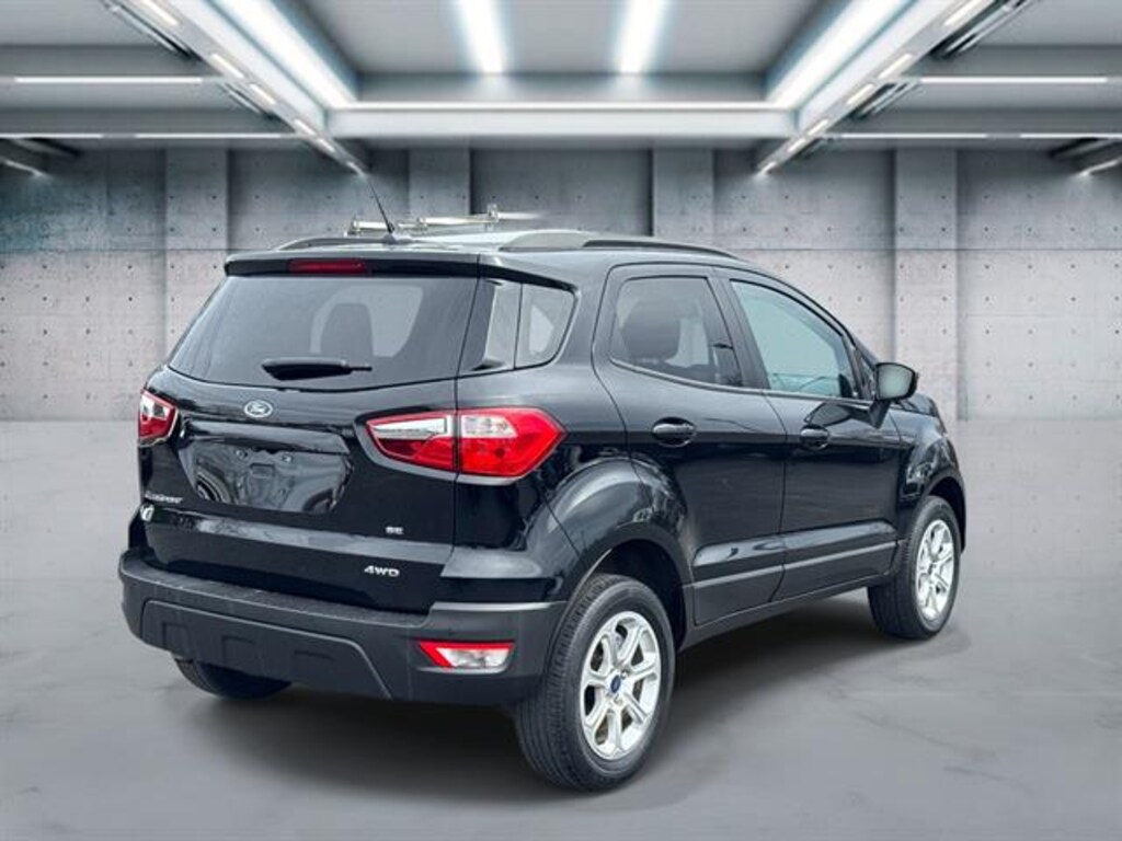 Experience versatility and style with this Black 2022 Ford EcoSport SE AWD Crossover. Enjoy confident handling with All-Wheel Drive and a fuel-efficient 2.0L I4 engine paired to a 6-speed shiftable automatic transmission. Inside, you'll find an 8-inch touchscreen with SYNC infotainment, Apple CarPlay, Android Auto, and FordPass Connect with built-in Wi-Fi hotspot. Stay comfortable with automatic climate control, heated front seats, power moonroof, and a leather-trimmed steering wheel. Safety features include rearview camera, rear parking sensors, blind spot monitoring, front/rear side curtain airbags, and tire pressure monitoring. The SE Convenience Package adds convenience with proximity key, push-button start, and ample cargo storage options. This EcoSport is ready for your next adventure-visit us for a test drive today!