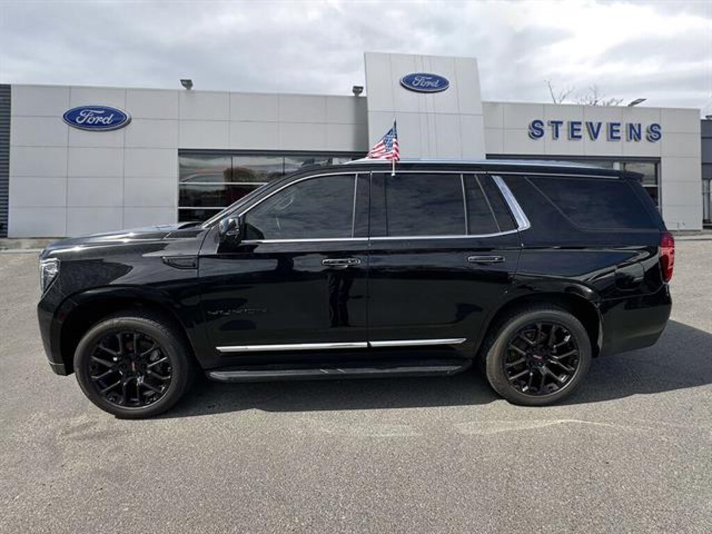 Experience luxury, power, and advanced technology with this Black 2023 GMC Yukon 4x4 SLT. Equipped with a robust EcoTec3 5.3L V8 engine and 10-speed automatic transmission, this SUV is ready for any adventure. Enjoy seamless connectivity with Wireless Apple CarPlay, Android Auto, and Amazon Alexa compatibility. Safety is a priority with features like Lane Keeping Assist, Front & Rear Parking Sensors, Rear Cross Traffic Alert, Blind Spot Detection, and multiple pre-collision warning systems. Stay comfortable with heated and ventilated leather-trimmed seats, tri-zone automatic climate control, and a power liftgate. The Yukon's expansive interior offers flexible seating, split-folding third row, and ample cargo space. Premium touches include Bose audio, polished aluminum wheels, and chrome accents. Take command with advanced driver assistance apps and enjoy peace of mind with OnStar and roadside assistance. This Yukon is the perfect blend of capability, comfort, and cutting-edge tech-ideal for families or anyone seeking a premium SUV experience.
